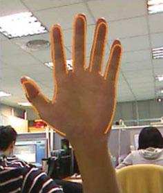 Human–computer interaction, or HCI for short, concerning how people interact with computers, has long been an important and popular research field. Though not completely realistic, fancy HCI applications such as those shown in the science fiction movies Minority Report and Iron Man have impressively demonstrated the potential and trend of HCI technologies that will be very soon made available. As one can very often observe, compared with traditional keyboard/mouse interfaces, the exclusive use of hands has distinguished itself by enjoying a more intuitive and natural way for communication. Furthermore, the increasingly popular concept of ubiquitous computing has called for convenient and portable input devices, thus making hand gesture inputs even more attractive. For example, a smart phone equipped with the capability of hand gesture recognition could be a good input substitute for its intrinsically small touch screen or keypad. Rather than data gloves, which transfer hand gestures through relatively expensive electronic devices, we are more interested in recognizing the gestures of a bare hand. In this regard, there exist works that can track a 2D articulated hand model. In this paper, we make further improvement in computation efficiency and propose novel interfaces to be coupled with the hand tracking system for more userfriendliness. |
